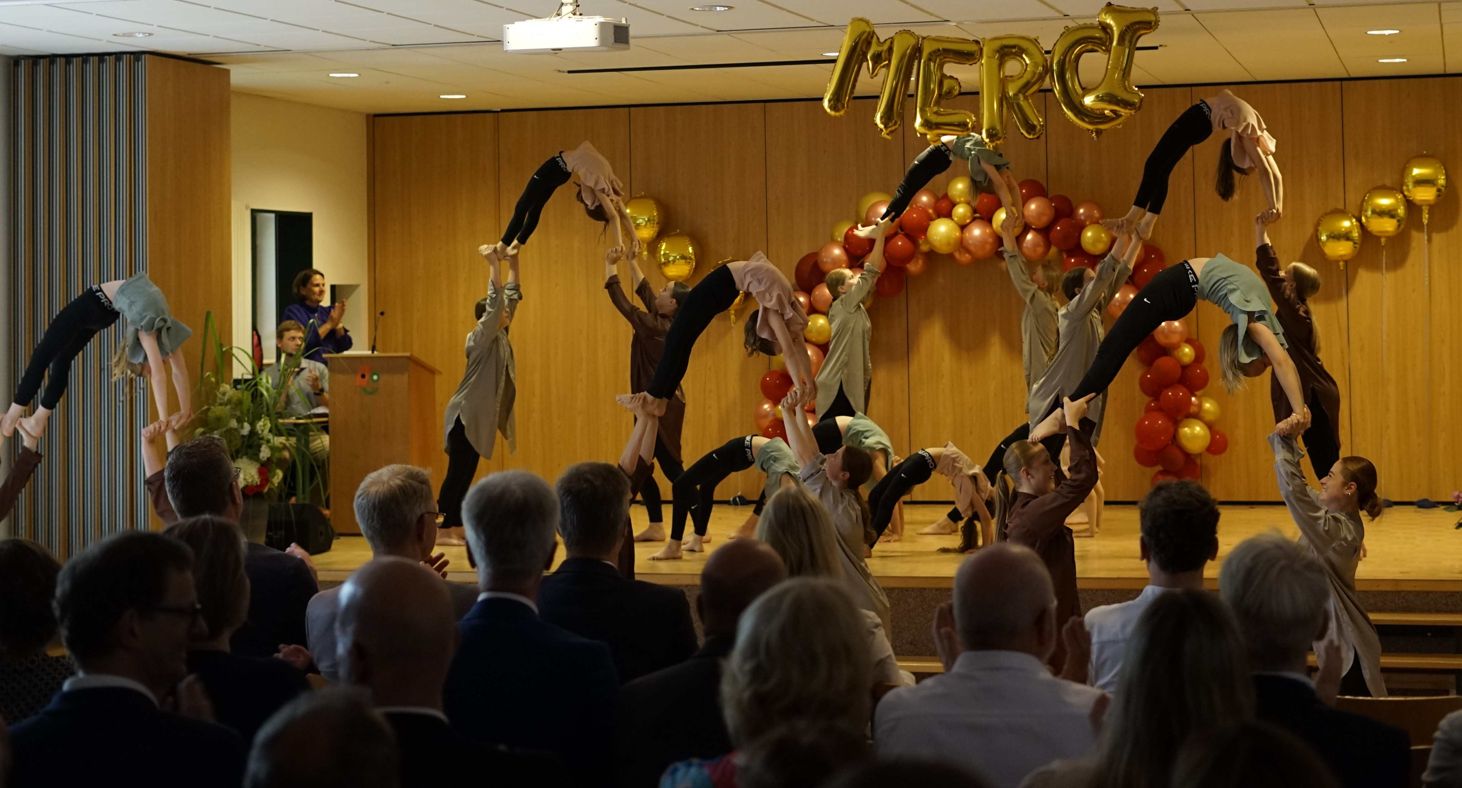 Wulf), ein Mozart-Duett (Naoko & Yumi Wengh) bis hin zu beeindruckender, atemberaubender Akrobatik (TV Gehrde) und dynamischem Tanz (Tanz-AG) sowie dem Theaterstück Der Handschuh“ nach einer Ballade Schillers – dargeboten von der Klasse 7a – jedes Detail spiegelte das Interesse unserer Schulleitung sowie die Verbundenheit und Wertschätzung ihr gegenüber wider.
