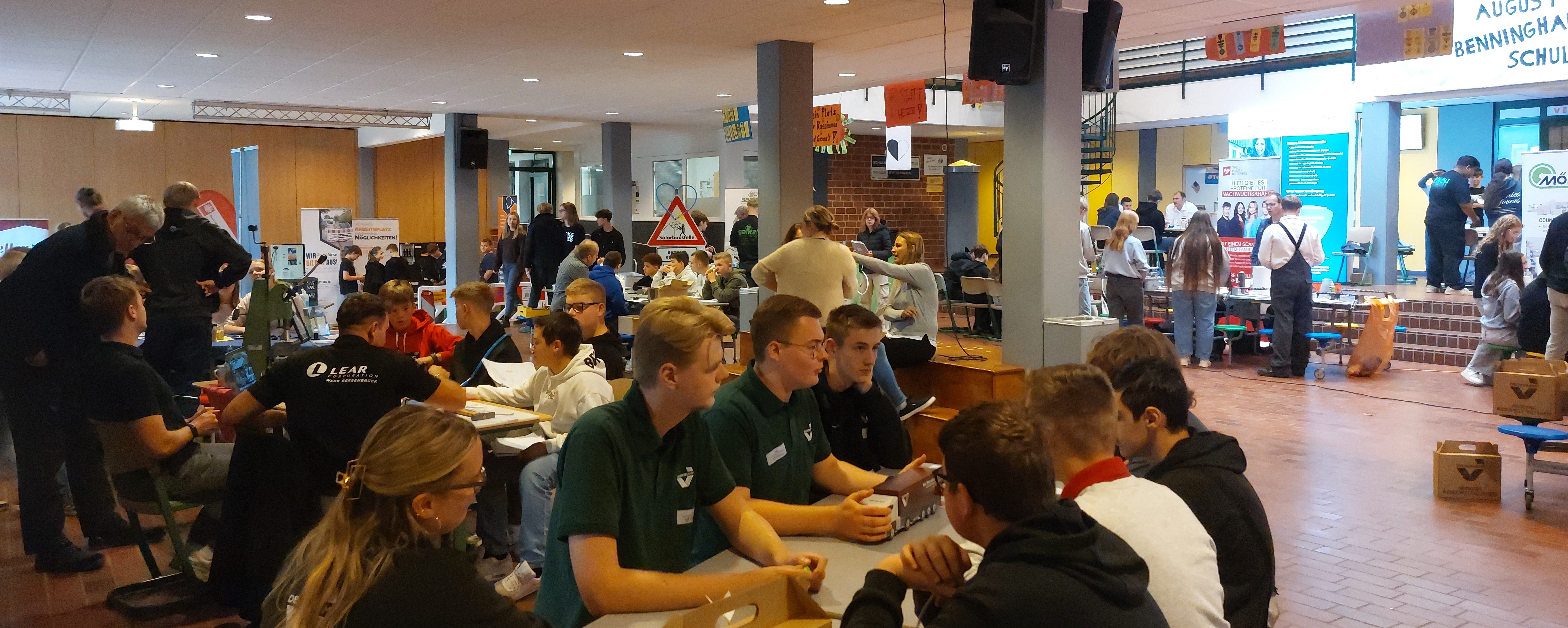 Mit viel Engagement waren unsere Schülerinnen und Schüler dabei; die Resonanz der Betriebe war durchweg positiv. Wieder einmal wurden erste Praktika direkt vor Ort für das kommende Schuljahr vereinbart. Einzelne Jugendliche aus den 10. Klassen kamen später hinzu, knüpften erste Gespräche zu möglichen Ausbildungen und übergaben ihren Lebenslauf bei gegenseitigem Interesse.